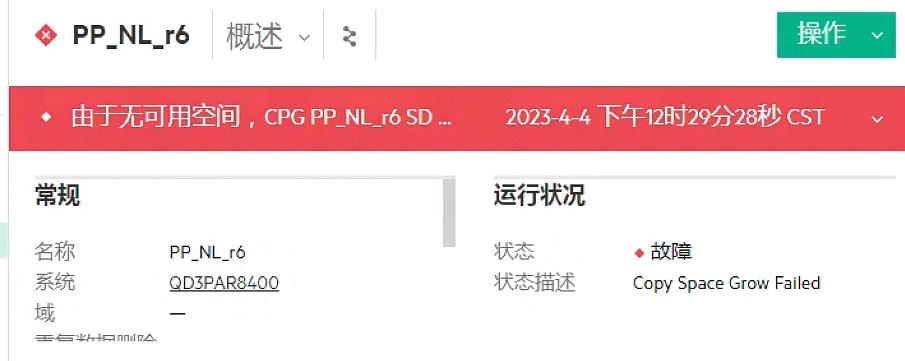 有一台3par8400存储之前空间不足报警