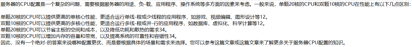 一台服务里服务器,配置CPU时,有2个选项:(1)配置1颗20核处理器A,(2)配置2颗10核处理器B;假设CPU A和B的主频相同。