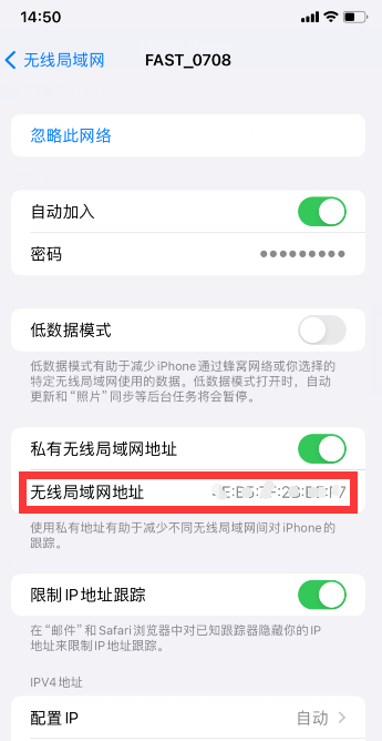 2、现在手机有一个“私有无线局域网地址”的概念,也就是手机在联接无线网时,MAC地址是会变化的,所以用MAC地址来绑定上网手机,需要手机关掉“私有无线局域网地址”选项的。