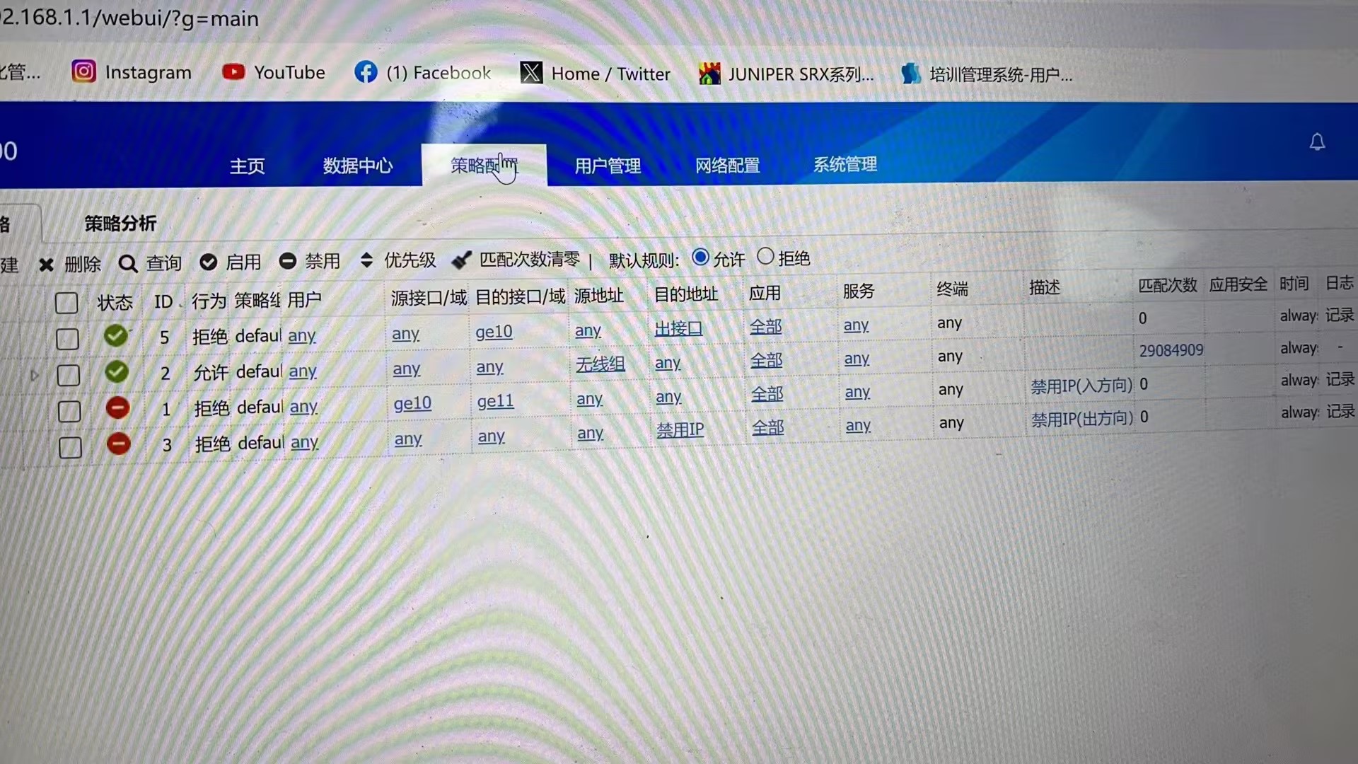 写了策略(ID 5),原接口any 原地址any 目的接口地址为出接口地址,但不生效。目前公网依旧能够访问出接口地