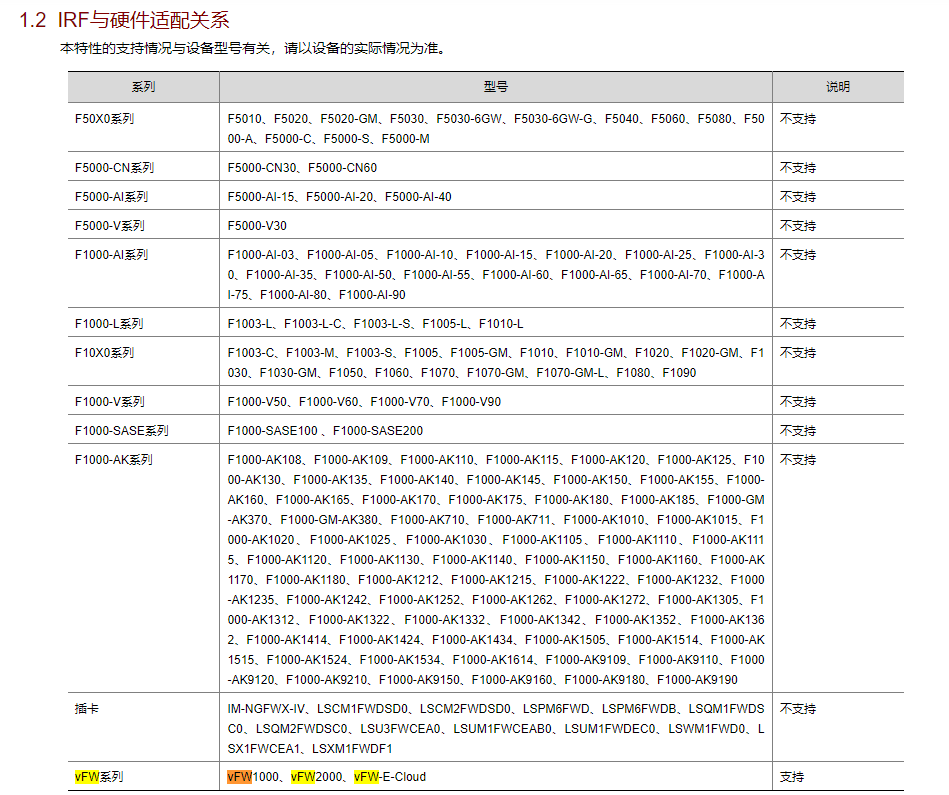 vFW系列 | vFW1000、vFW2000、vFW-E-Cloud | 支持 |