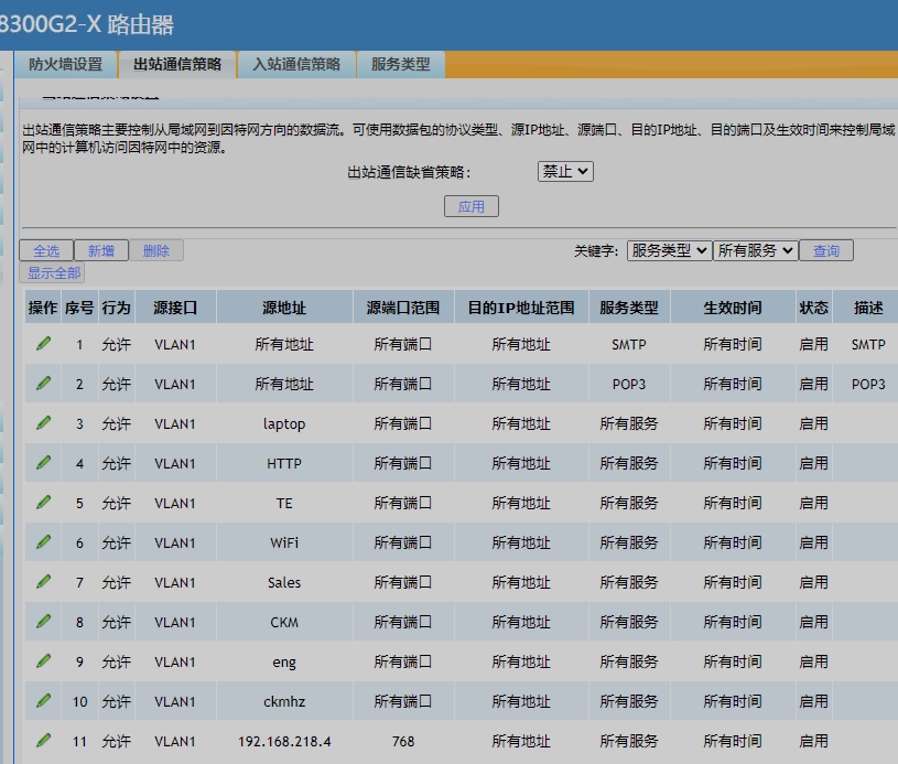 防火墙出站通信策略设置了禁止 今天网络一直掉线 就重启了下路由器 然后发现防火墙无效了 全都可以上网