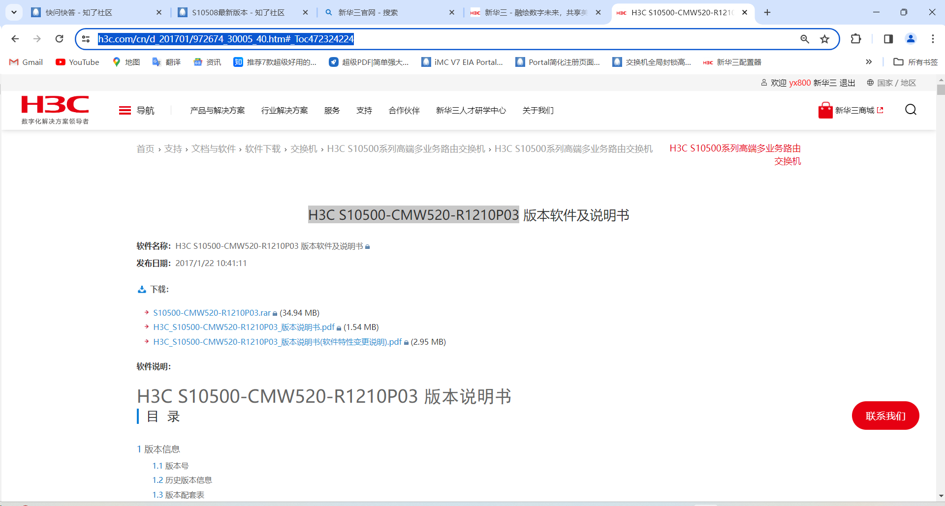 最新版本是:H3C S10500-CMW520-R1210P03