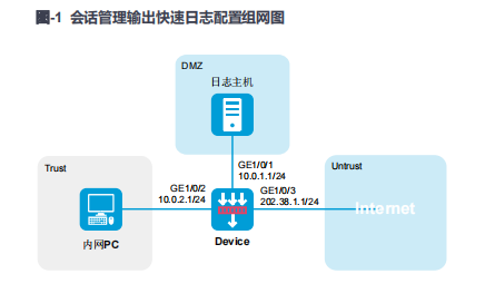 某公司内的用户可以通过 Device 访问外网的 HTTP 服务,需要在 Device 记录会话日志,最终将日志通过快速日志方式输出到日志主机,日志