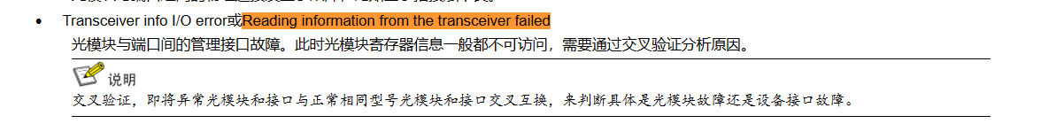查看光模块光衰时,提示: