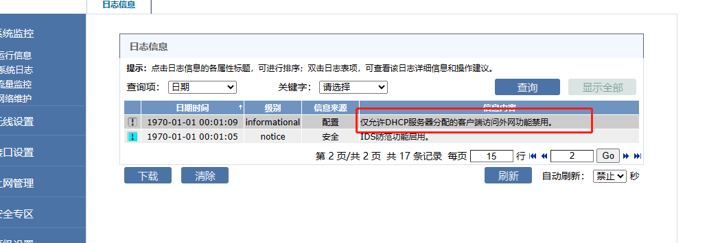 你这台路由器底下还接一个路由器,如果仅允许DHCP服务器分配的终端可以上网,那二级路由器底下的设备地址都不是由一级路由器DHCP服务器下发,会出现全部无法上网情况,所以这个功能启动时会自行关闭,确保路由器下级所有终端都可以上网
