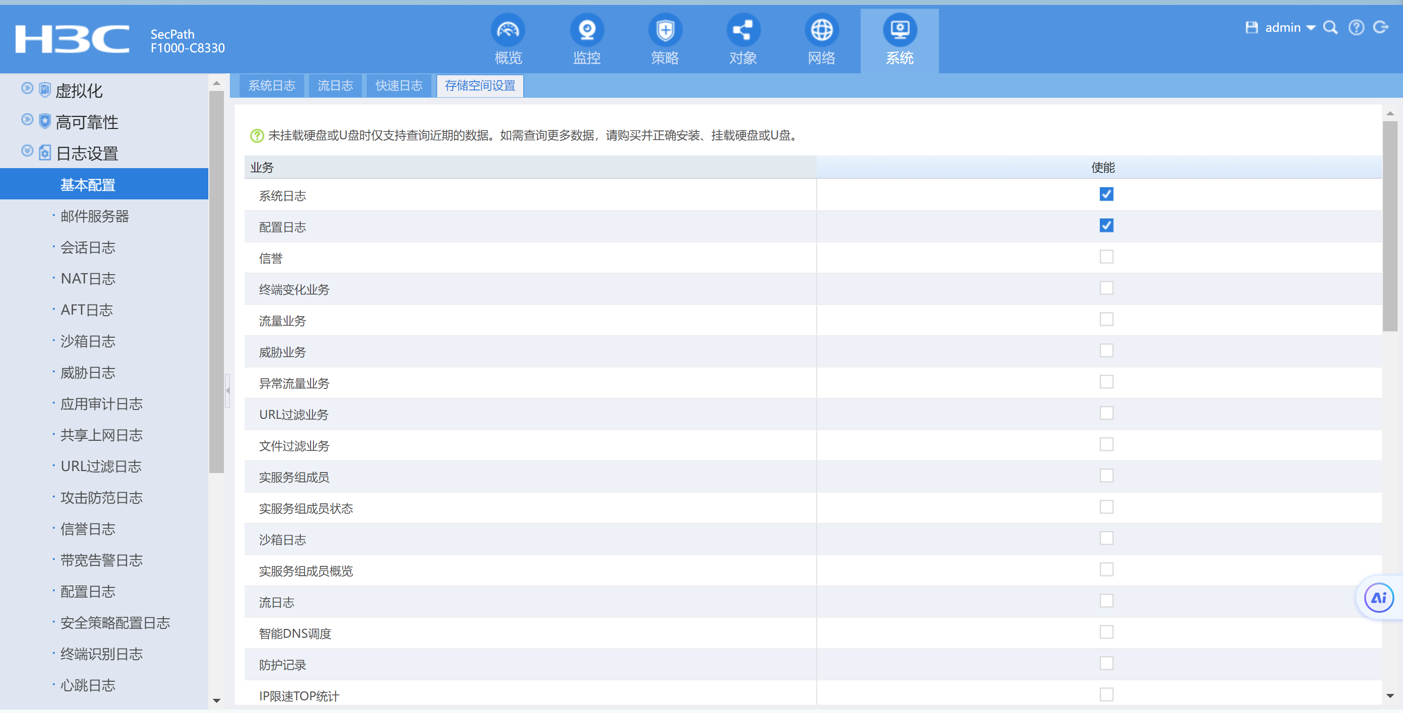 日志能设置储存在这个上吗,没有找到,日志老显示超过80%