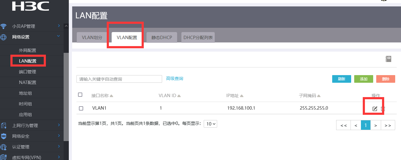 多个vlan的情况下,怎么把设备的管理端的ip地址修改一下?