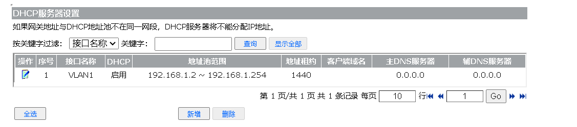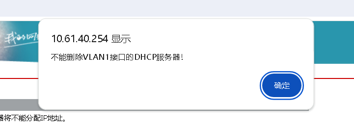 把DHCP关闭,提示不能删除VLAN1接口的DHCP服务器!