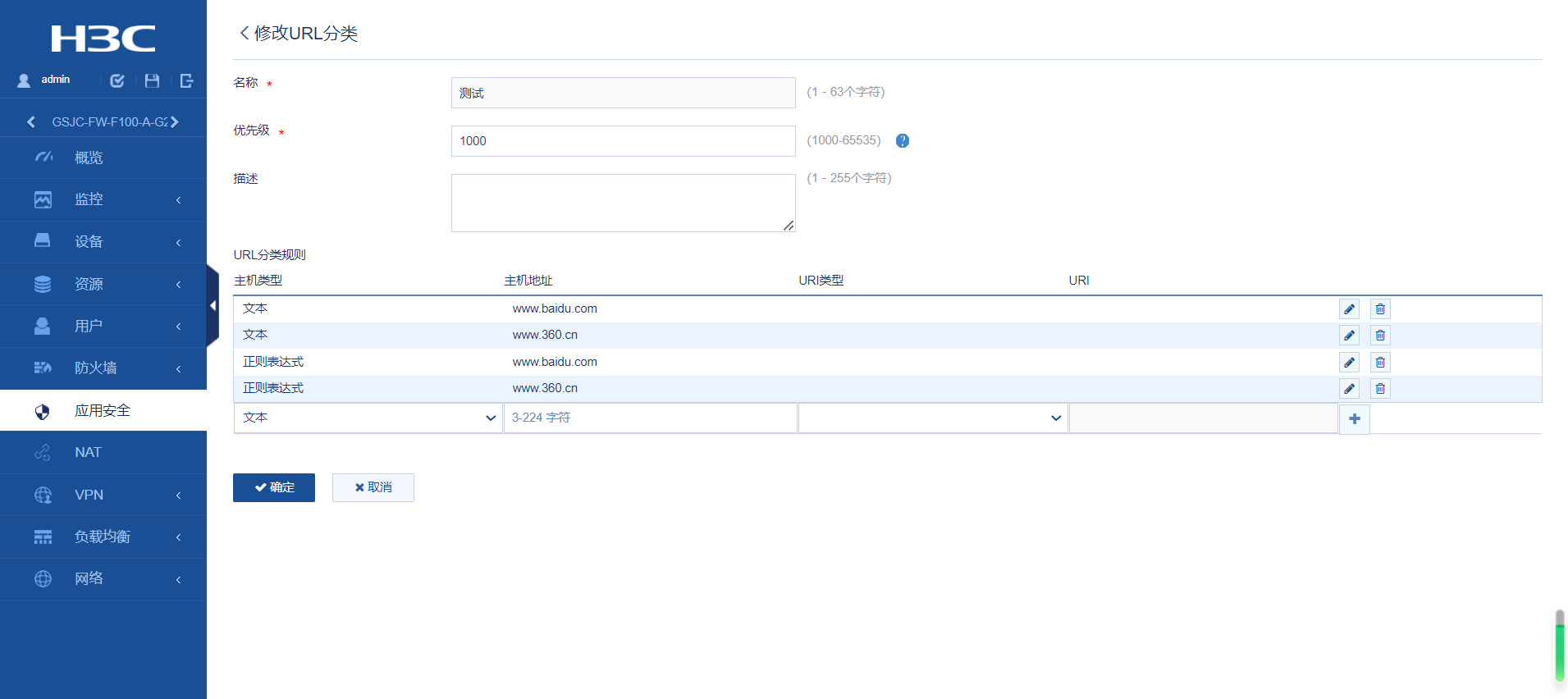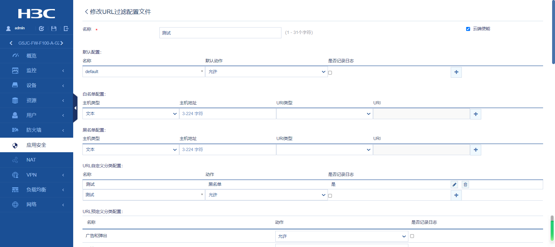 在“应用安全” - “URL过滤”中添加了过滤条件;