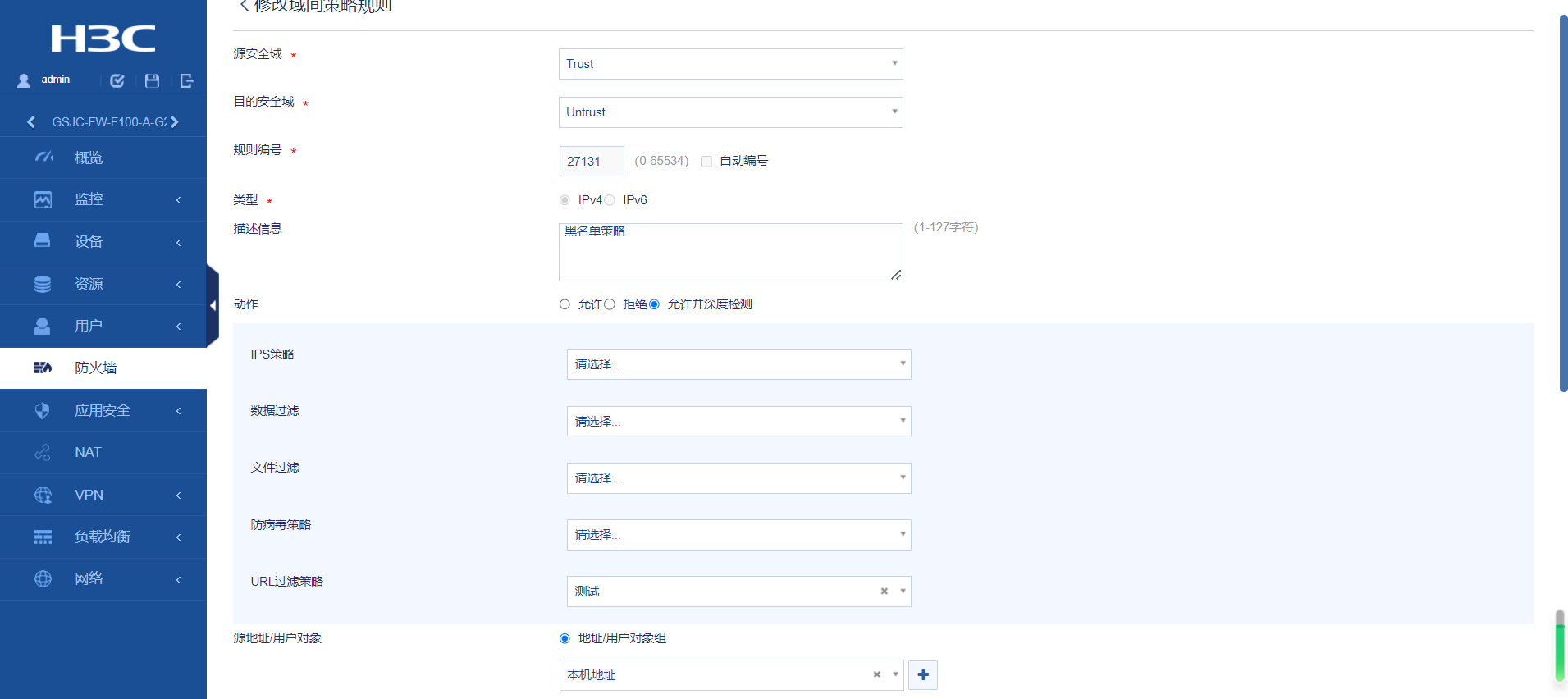 在“防火墙” - “安全策略”中选择了过滤条件,但不知道为什么不生效。