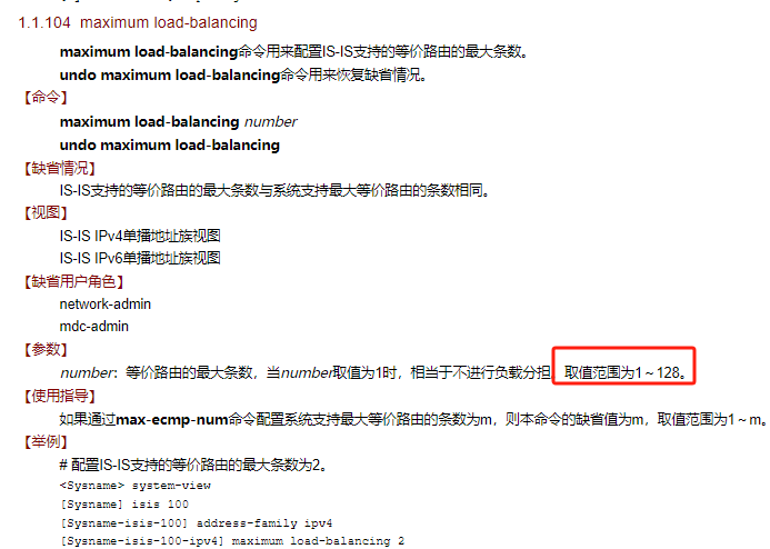 请问配置isis、OSPF、BGP的maximum load-balancing命令,12508G-AF Release 7634P11和12504 Release 7634P11这两个设备支持的最大值是多少啊