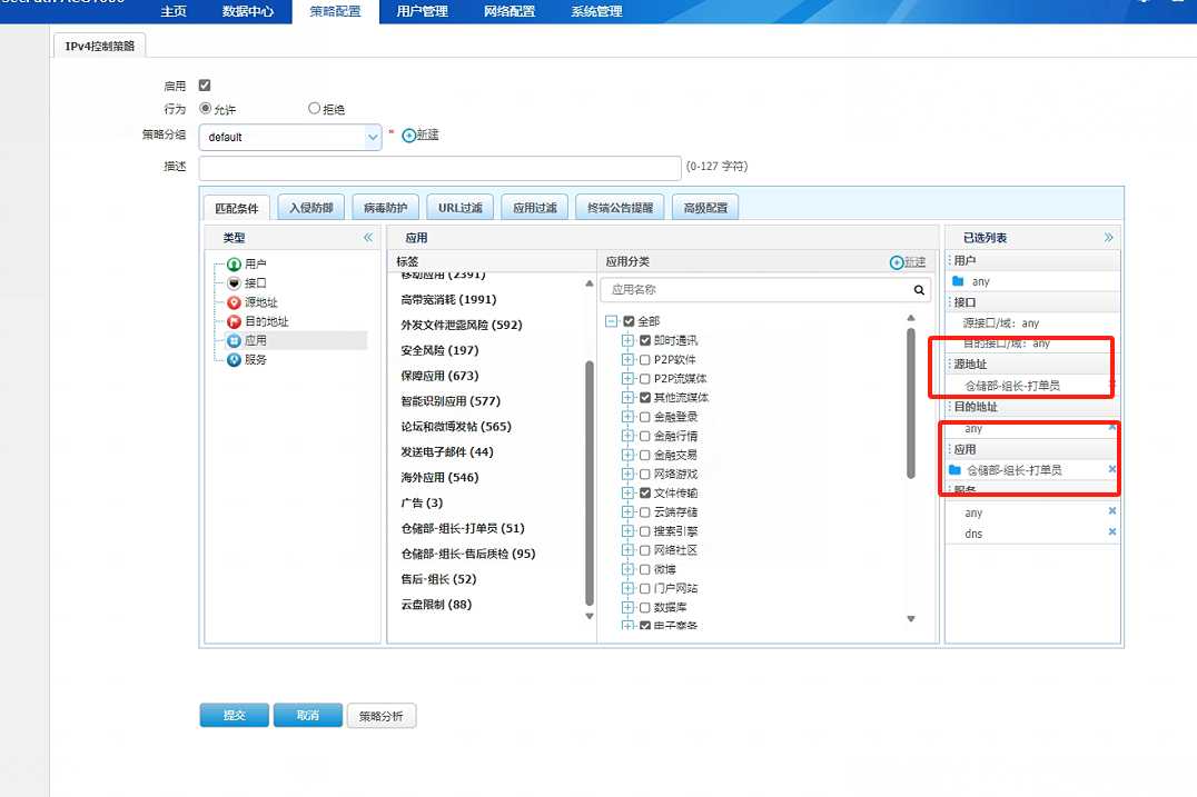 现场有台acg 需要做控制策略,允许一些特定的ip地址去访问一些特定的网站(抖音 淘宝这些),并且不能再访问他网站和上外网,然后在应用中选定了这些网站并且允许了 然后之后打不开这些网站,想请教一些这是什么问题