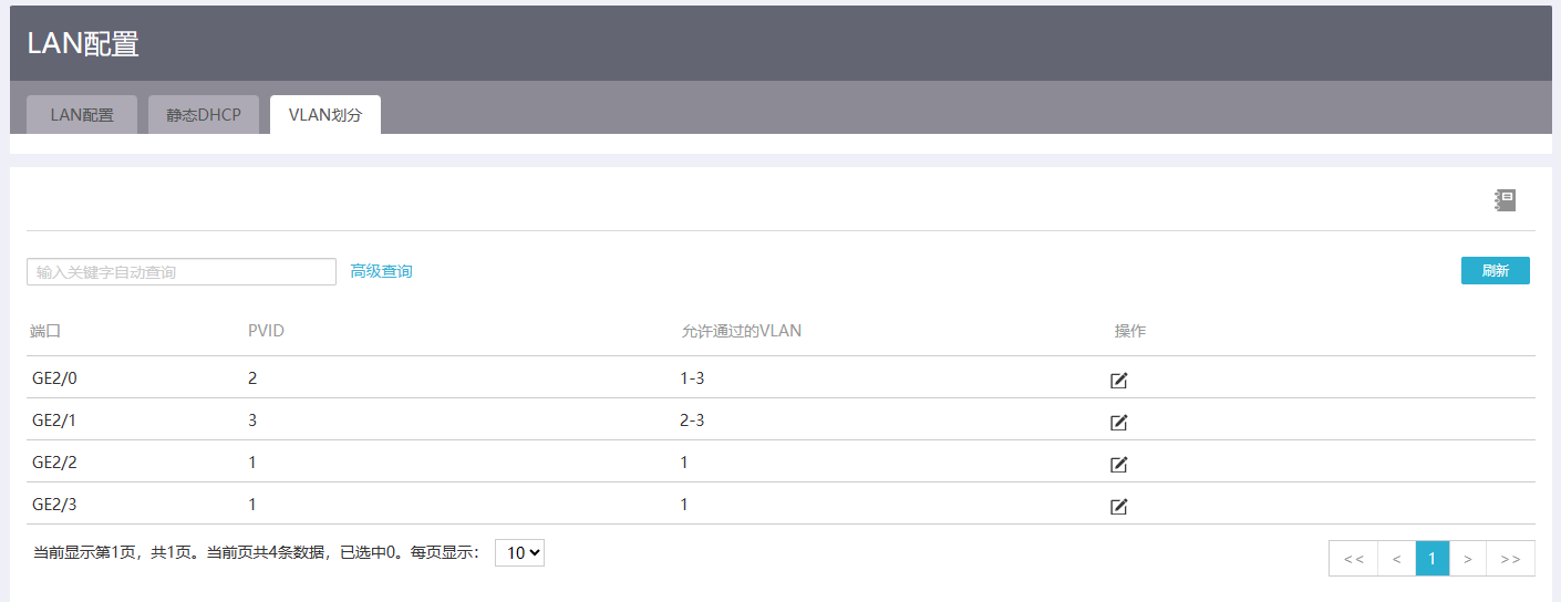 已经实现了, VLAN 2 可以 ping 通所有网络 , 3 只能 ping 通 2、3
