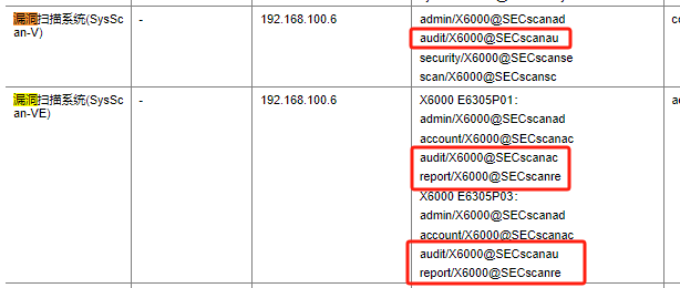 漏洞扫描的audit report 这俩个用户的默认密码是什么