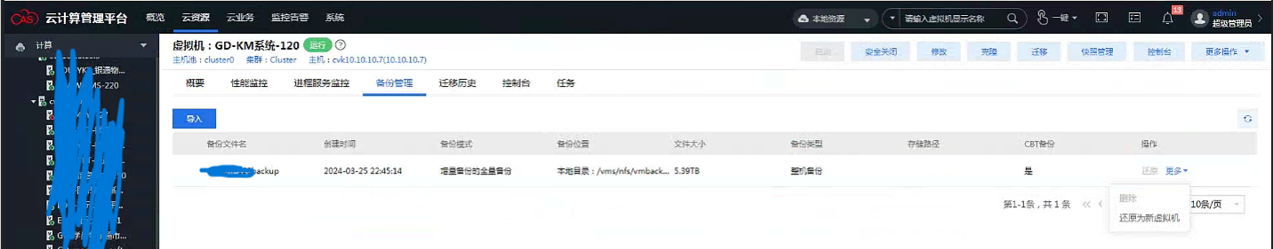 您好,虚机一旦做了数据备份,前台至少会保留一个所有数据的备份文件,此文件无法删除,若需删除只能重新全量备份一份新是数据,再删除老的数据。