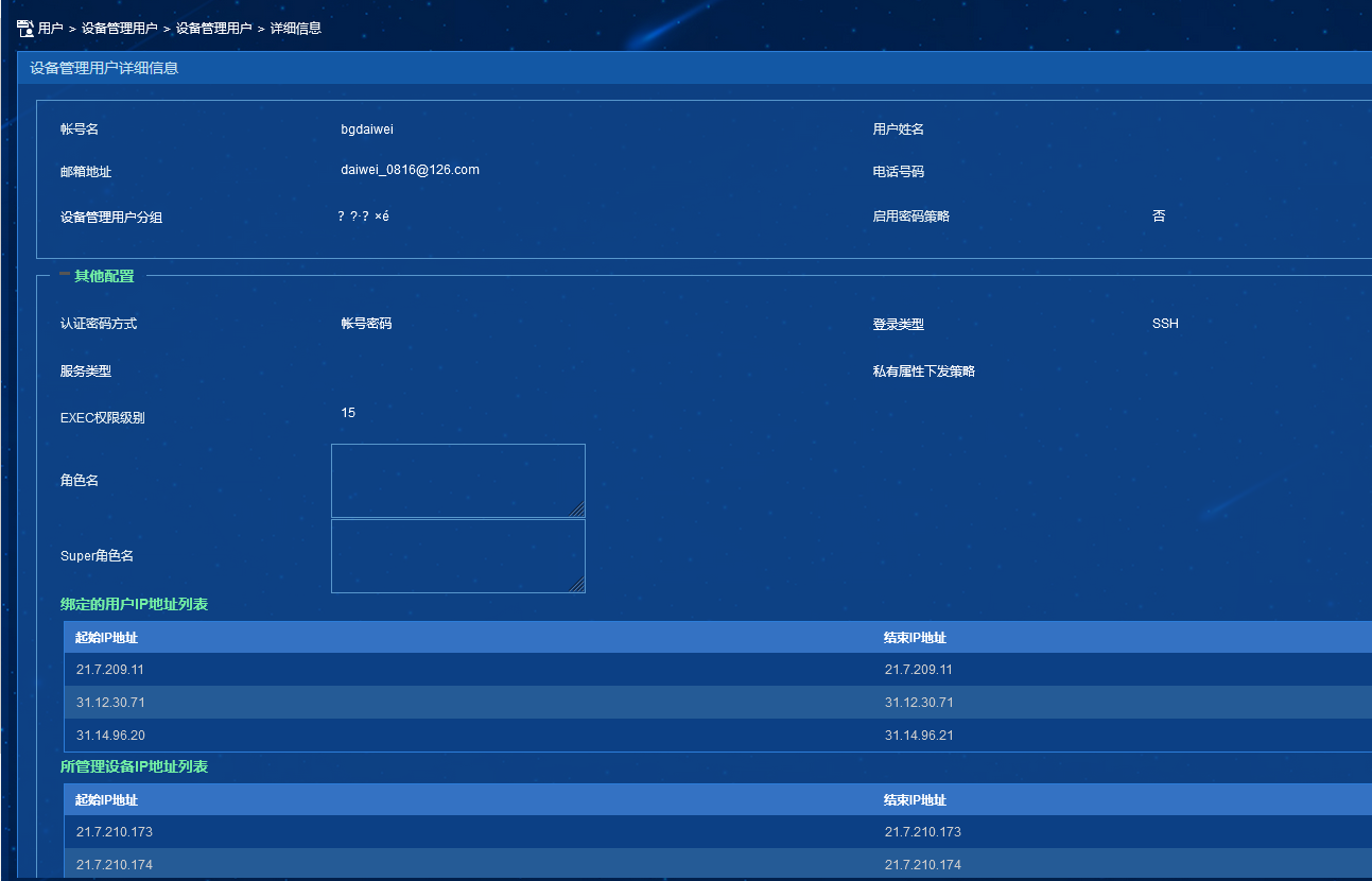 用户通过本地认证并被授权指定的用户角色后,发现登录设备后实际具有的权限与被授权的用户角色权限不符。