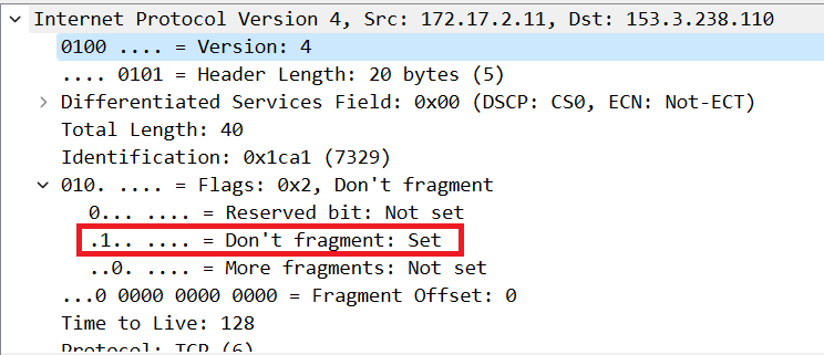 如果这个flag不置位,说明报文可以随意分片,那就没有异常。