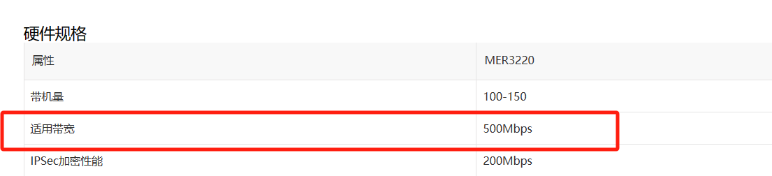 硬件规格写着:适用宽带 500Mbps,可是也跑不到诶