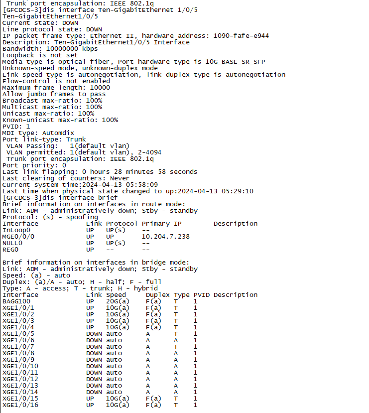 等命令来确认是否是模块或配置异常,如果排除了。请检查物理线缆和对端情况