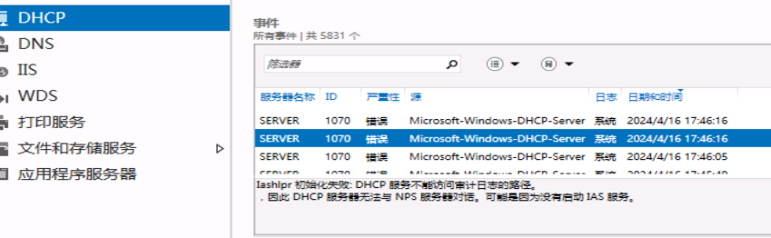 怎么解决,求大神解答。Iashlpr 初始化失败: DHCP 服务不能访问审计日志的路径。因此 DHCP 服务器无法与 NPS 服务器对话。可能是因为没有启动 IAS 服务。