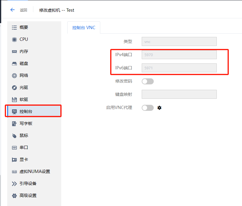 cas的linux虚拟机需要访问的话,地址填的是cas管理地址,vnc的端口的话修改虚拟机里面查看控制台里面的ipv4或者ipv6的vnc端口号