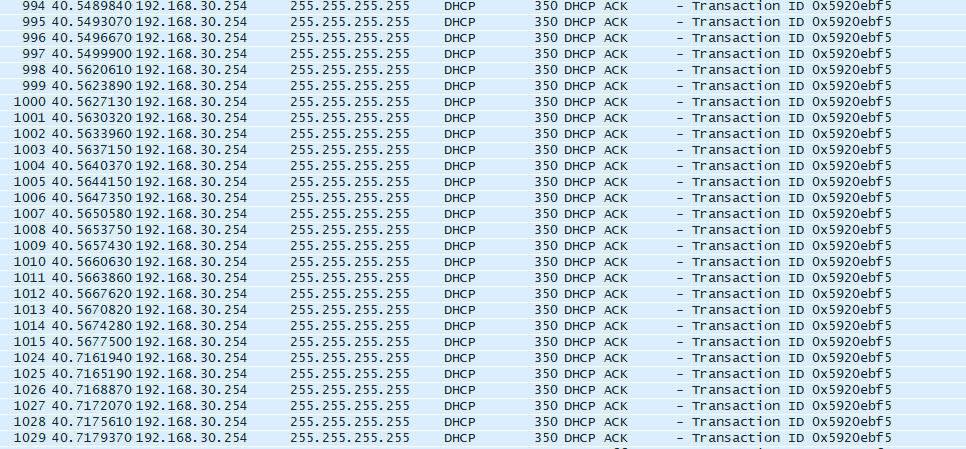 意思就是dhcp服务端只回复了1个offer,1个ack报文。交换机却向客户端转发了分别转发了300多offer和100多个ack报文。