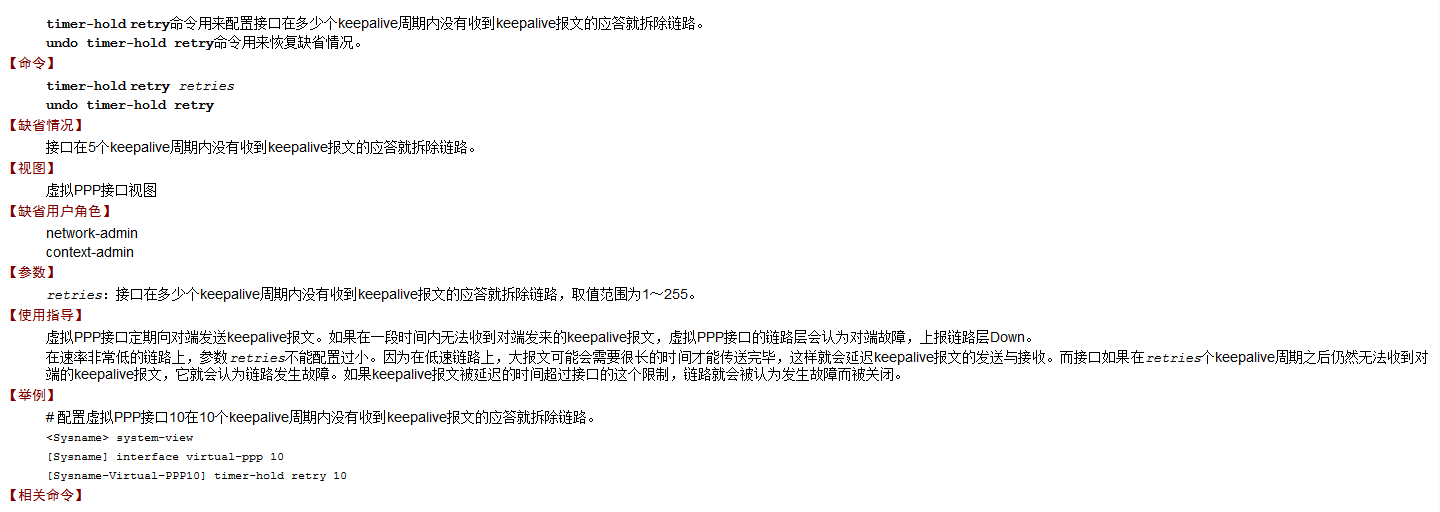 看了下命令手册没看到有这种超时时间,本身是有探测机制的,探测不成功就拆链了。