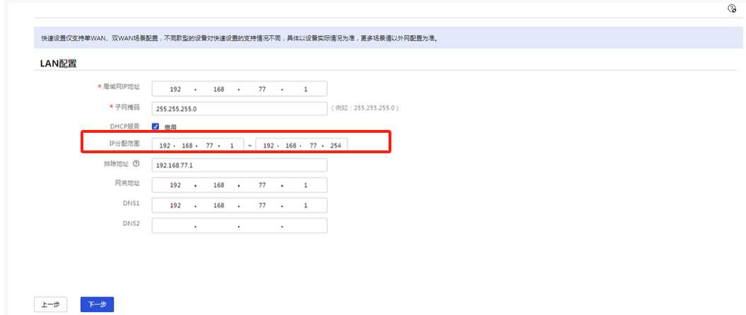 (1) 单击导航树中[网络设置/LAN配置]菜单项,进入LAN配置页面。