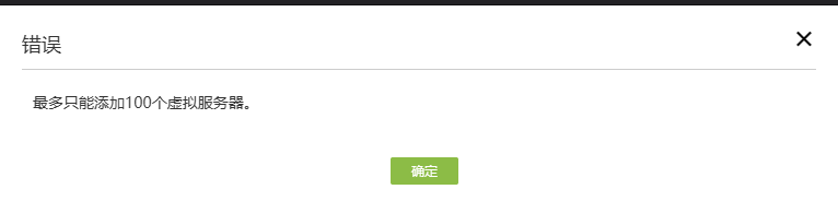 2、在多次修改wan口后,重新配置nat,会触发nat配置上限,弹框显示错误,报错内容是:“最多只能添加100个虚拟服务器。