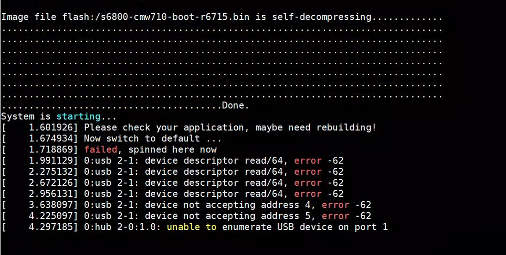 从Release 2612P11 升级到H3C S6800-CMW710-R6715,REBOOT后报如下错误无法启动