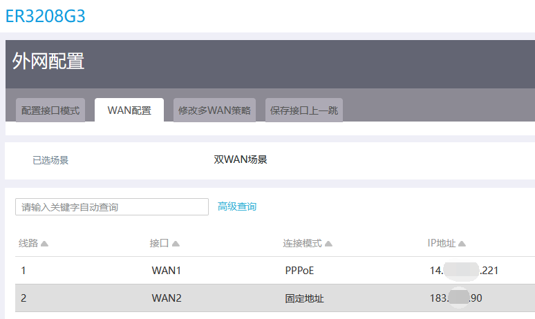 WAN口情况如下: