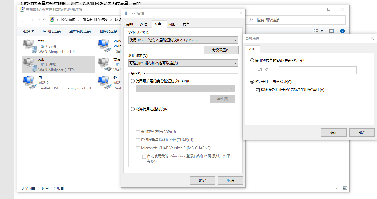 已经配置在用的L2TP VPN,最近发现电脑客户端无法连接,