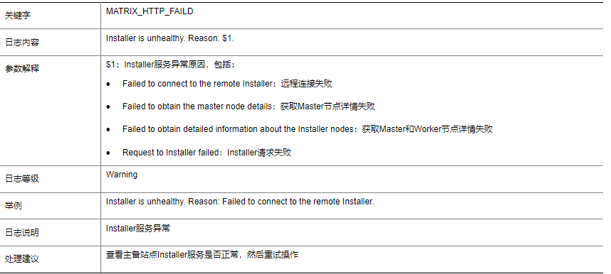 sna01 SeerEngine-DC/WARN/MATRIX_HTTP_FAILD: -Module="RDRS"; -ipaddr=----topic=RDR; Installer is unhealthy. Reason:Failed to obtain detailed information about the Installer nodes.有没有大神能看到这是一条什么告警信息呢
