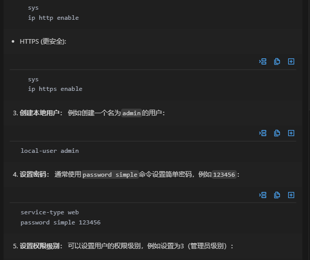 #创建本地用户admin,并设置登录密码为admin,服务类型为http跟https,用户级别为network-admin管理员级别