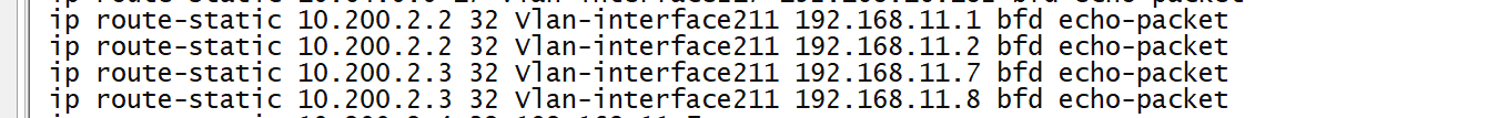 处于vlan211(做了vrrp)中的下一跳地址的静态路由bfd正常