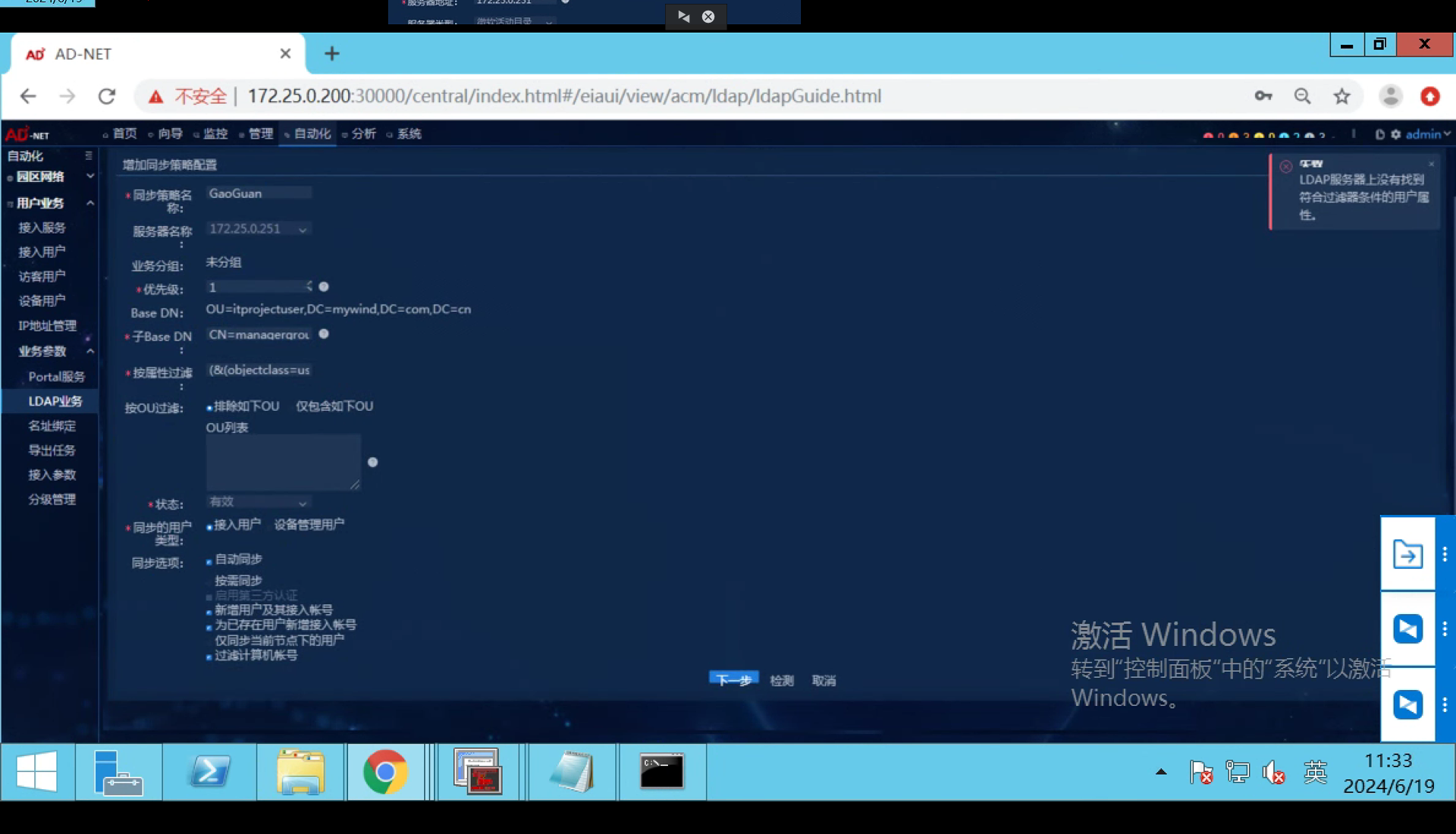 LDAP服务器上没有找到符合过滤器条件的用户属性