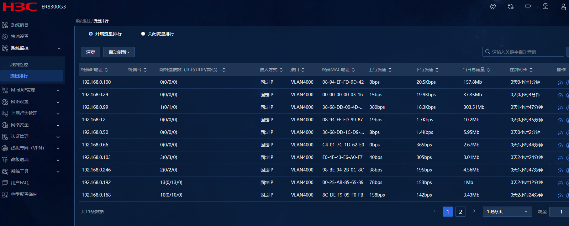 er8300g3,流量排行看不到其它网段终端,只能看到跟路由器同网段的