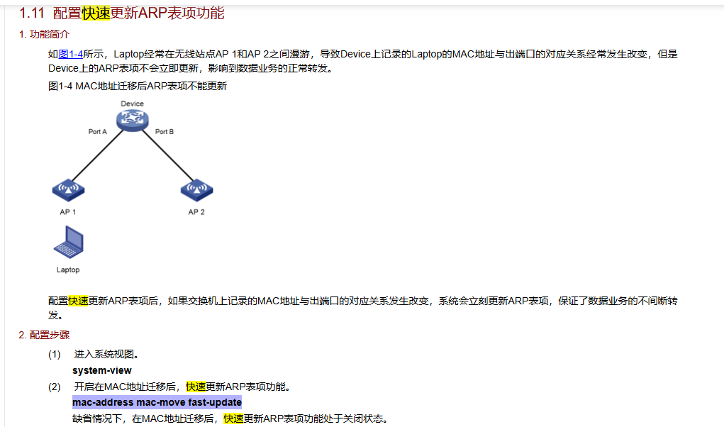 快速arp更新功能需要在AP经过所有交换机都配吗,还是核心上配就行