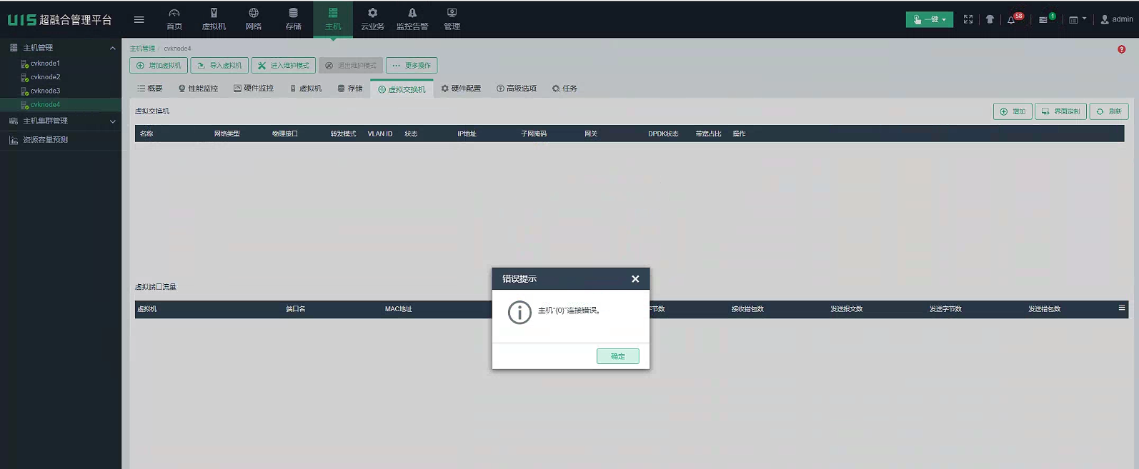 节点4主机连接主机失败,无法关闭、停止节点4的虚拟机。