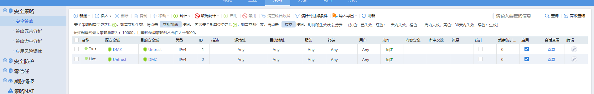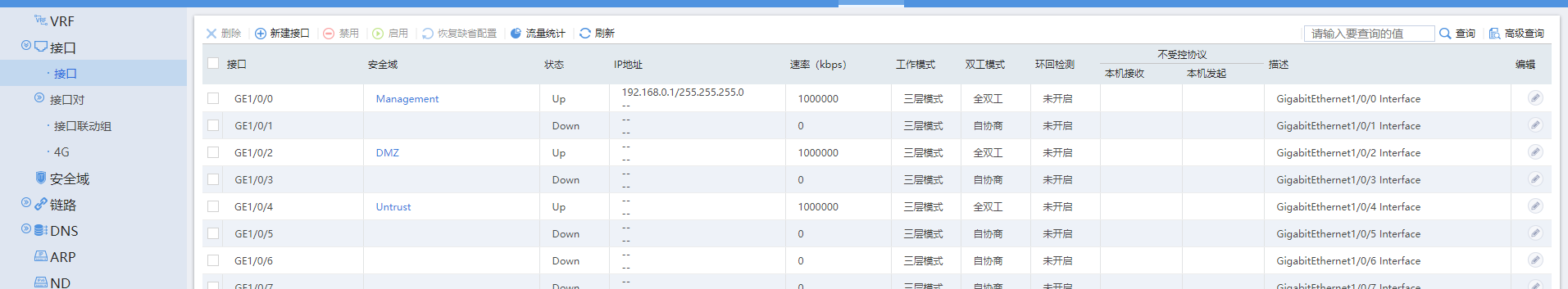 均为内网,服务器PC(192.168.120.2)直连接口2,其他PC(192.168.120.X)连接接口3,将接口归到对应安全域,设置了安全策略,但是不互通