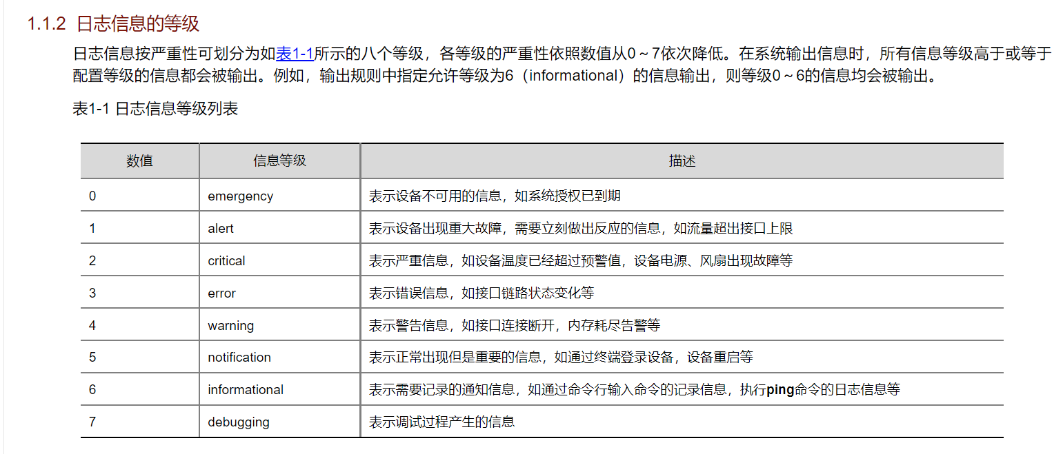 客户需要现场日志输出级别为 0-4,需要通过哪个命令可以实现设备向日志主机只发生0-4级别的日志?