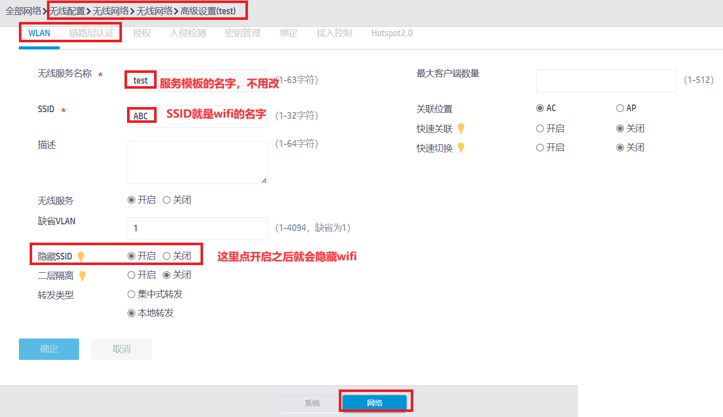 配置无线名称隐藏。
