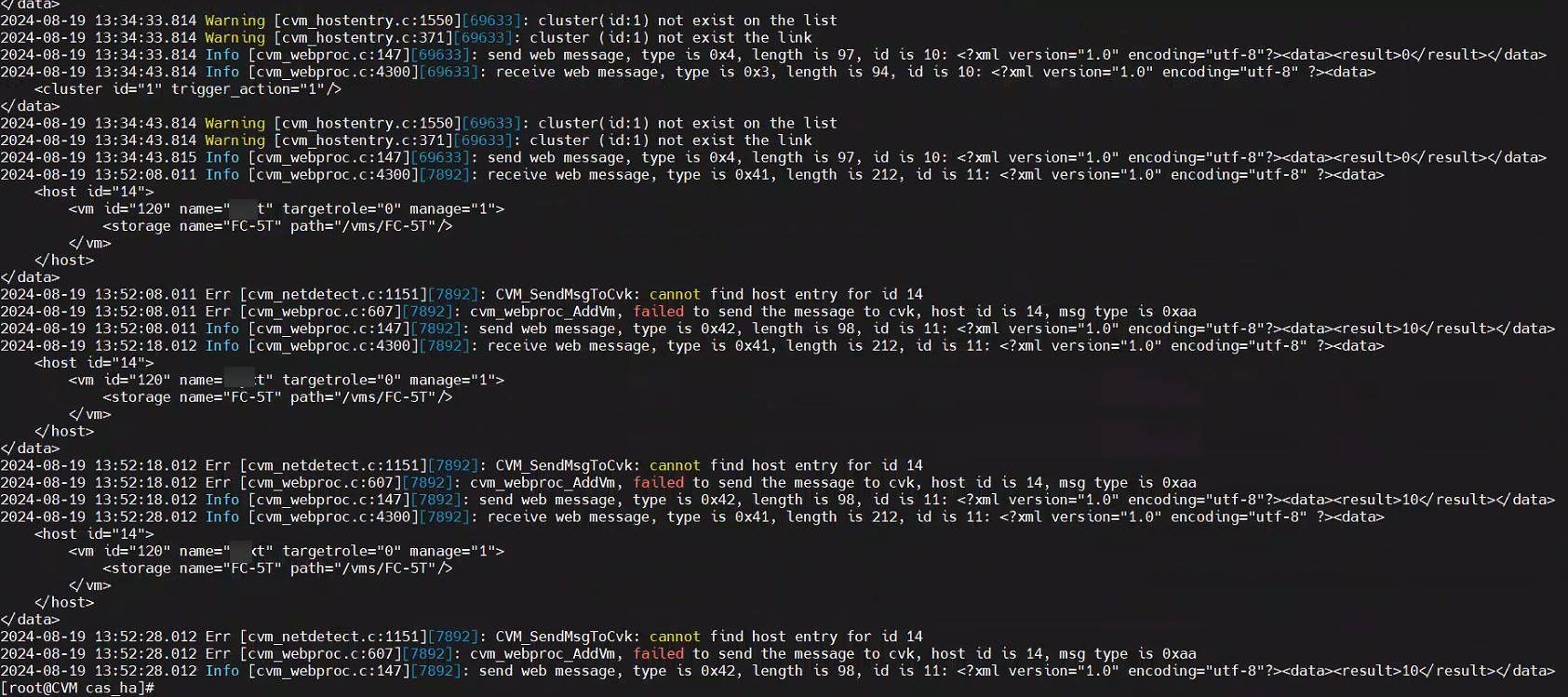 CAS平台新建虚拟机与关闭集群HA均出现HA进程响应超时,CAS网络环境是正常的,请问如何解决HA进程响应超时问题呢