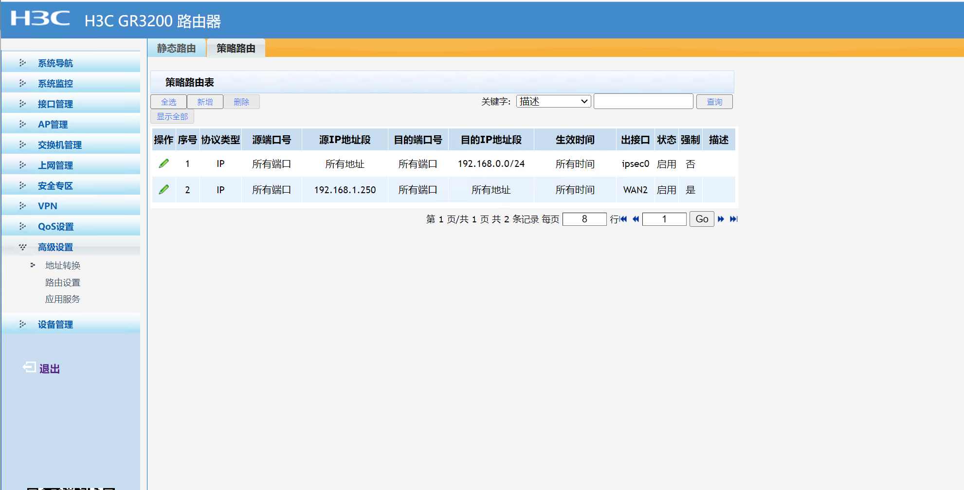 在这个位置可以设置策略路由