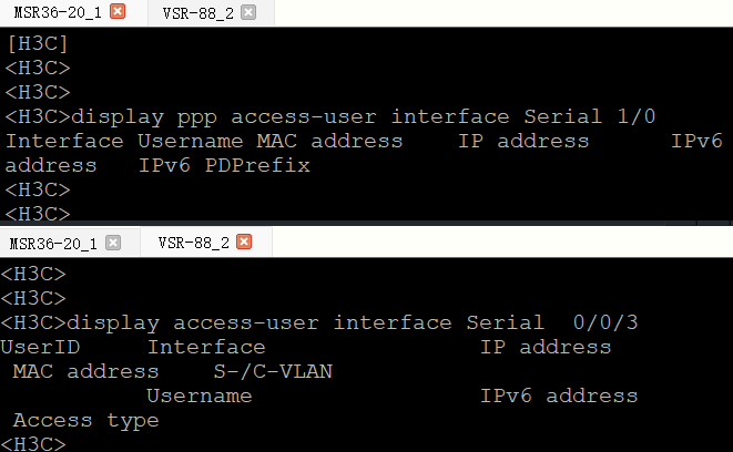 <H3C>display ppp access-user interface serial 0/0/3