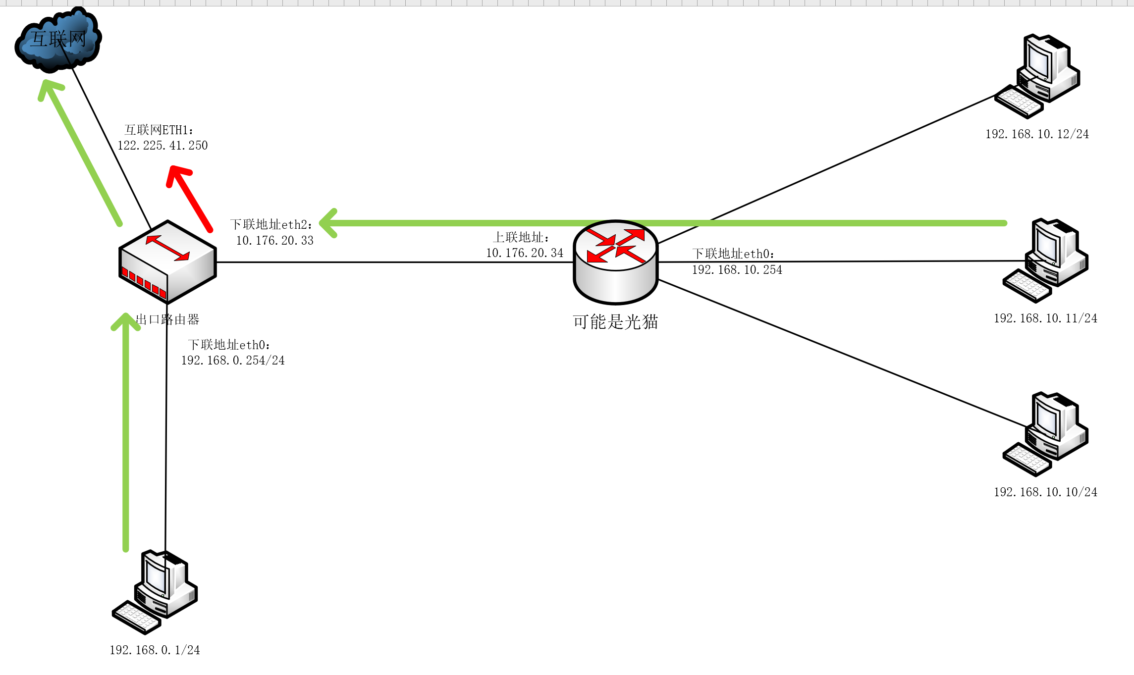 2、其中原有的192.168.0.0网段可以通过10.176.20.33地址访问互联网