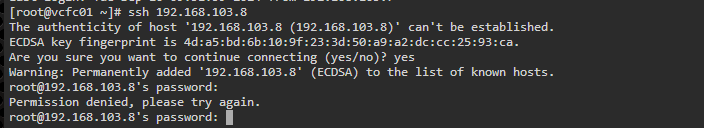 目前可以从其他设备上登录到103.6,也可以从103.6上ssh到103.7;103.7也可以ssh到103.6上,但是集群IP 103.8无法登录。请问是否需要在备机上也执行相关操作后才能正常ssh
