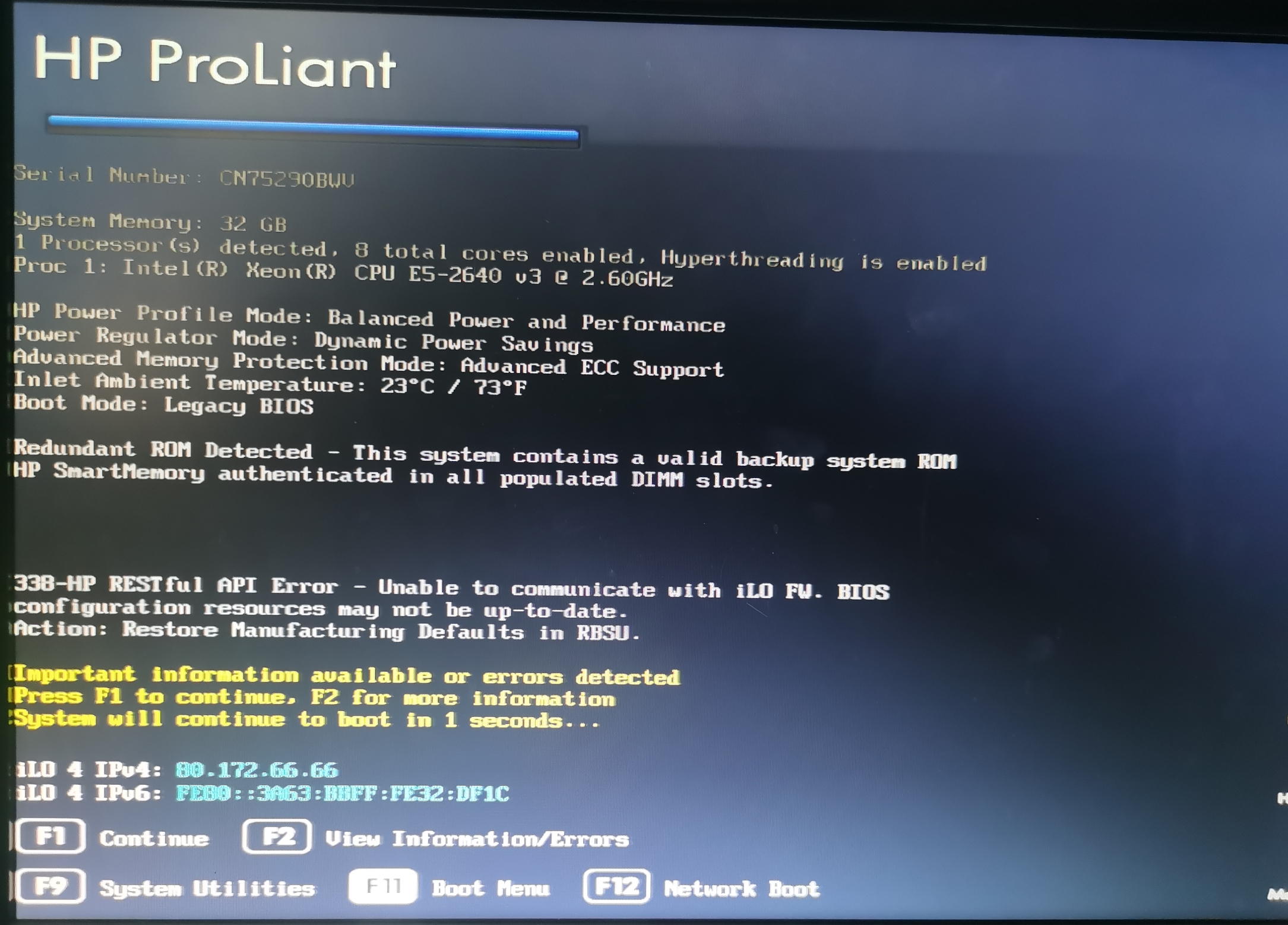 DL388 Gen9 服务器,F10(Intelligent Provisioning)无法使用,我将BIOS调整成了Legacy BI0S启动模式,请问朋友们,在Legacy BI0S模式下按什么快捷键进入到阵列卡配置界面???谢谢