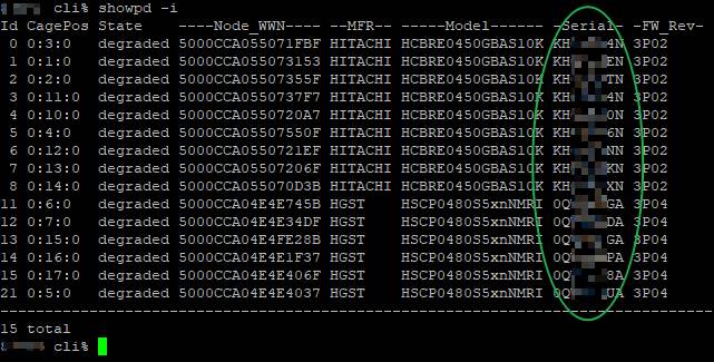 3par存储命令怎么查看每块硬盘的序列号,包括硬盘框的硬盘